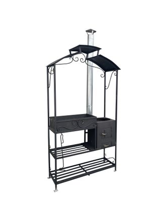 Кованый мангал с крышей "Изящный с печью"